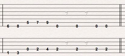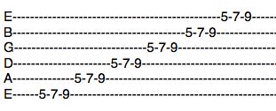 Next, start at the string 1 (high E) and return to string 6 (low E):